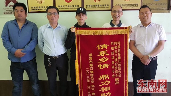 东南网阿根廷11月19日讯(记者谢昌修)今年初,福清籍华人超市业者林某在阿根廷布宜诺斯艾利斯市协助尼尼批发商(Nini)送货员卸货时,因送货员的疏忽导致其伤重致残,送货员却在林某受伤后逃逸,引起阿根廷侨界的强烈不满。在中国驻阿根廷大使馆侨务领事陈志军的指导下,以阿根廷福清会馆、阿根廷福清同乡会、阿根廷三福企业商会为首的许多侨界领导发挥侨界力量,依法以和平协商的方式与尼尼批发商进行了交涉,并最终为林某争取到医药费及相关赔偿金。当地时间11月18日,林某家属特别前往了阿根廷福清会馆致谢,并赠送了写有“情系侨情鼎力相助”的锦旗给福清会馆、福清同乡会及三福企业商会。