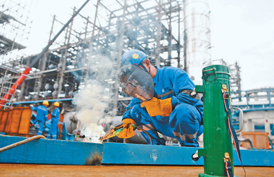 在文莱首都斯里巴加湾市东北角的大摩拉岛,由中国恒逸石化承建的大摩拉岛项目一期工程正在建设中,未来这座现代化石化产业基地将助力文莱实现产业升级,摆脱资源出口依赖。图为11月1...