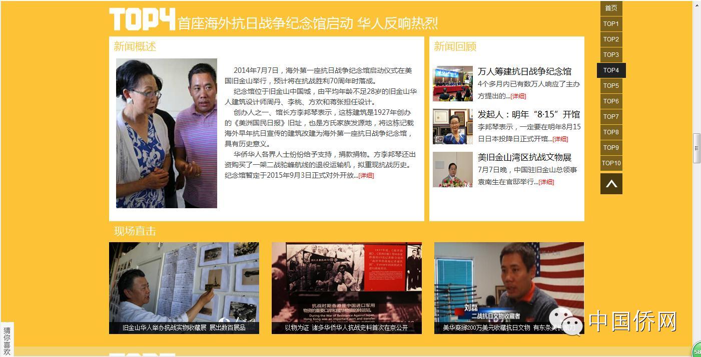 2014年7月7日,海外第一座抗日战争纪念馆启动仪式在美国旧金山举行,预计将在抗战胜利70周年时落成。