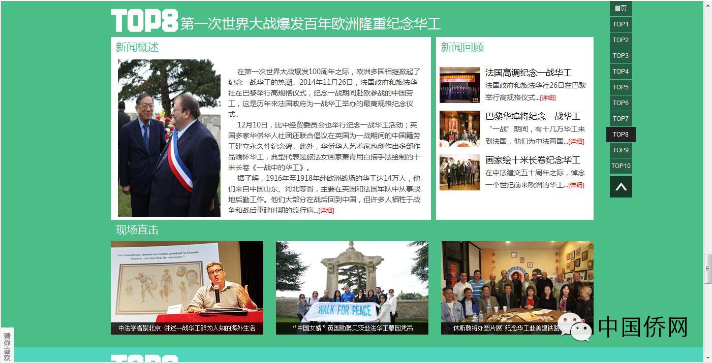 在第一次世界大战爆发100周年之际,欧洲多国相继掀起了纪念一战华工的热潮。2014年11月26日,法国政府和旅法华社在巴黎举行高规格仪式,纪念一战期间赴欧参战的中国劳工,这是历年来法国政府为一战华工举办的最高规格纪念仪式。