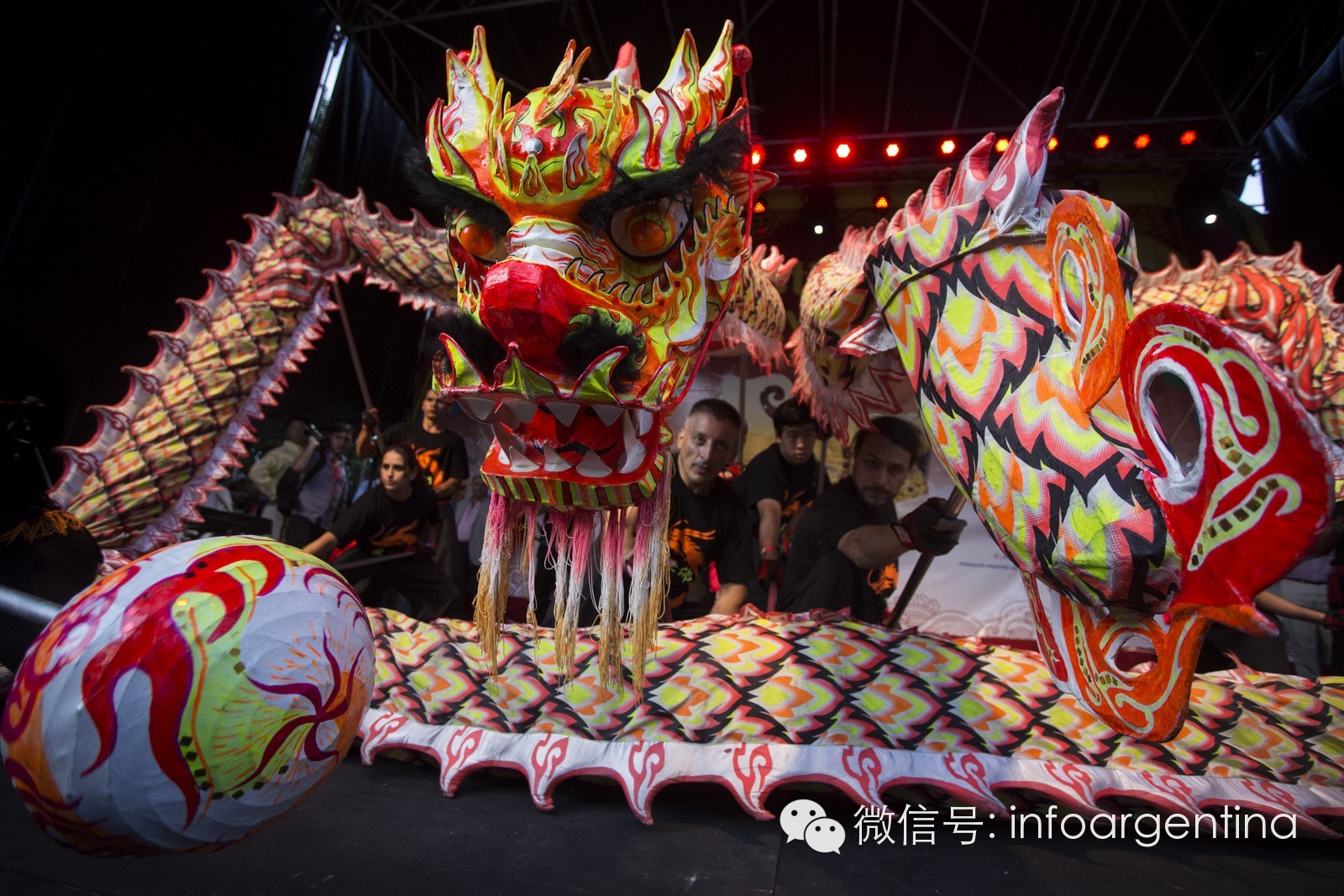 2月14日,布市中国城附近锣鼓喧天,金龙狂舞。2015年羊年春节庆祝晚会热闹开演。精彩的文艺表演和场外春节庙会诱人的中华美食,让近20万阿根廷民众流连忘返。