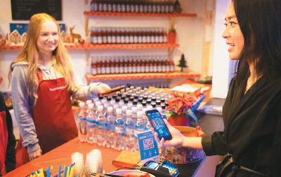 中国游客在挪威全球最大的姜饼城使用支付宝消费。支付宝供图