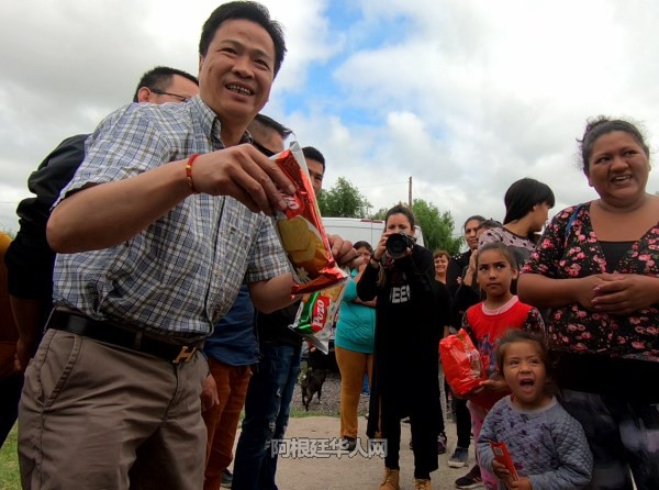 (阿根廷华人网12月18日讯 柳军/文图视频)今天一大早,拉普拉塔市35 街区的居民就排起了长队,他们在等待拉普拉塔华商联谊会前来慰问,并为他们发放圣诞礼品。该市市长Julio Garro先生,布市议员袁建平,拉普拉塔华商联谊会会长董春风等班子成员,在现场向排队的每一位居民赠送了圣诞礼物,使他们能够渡过一个愉快的节日。