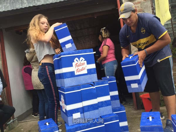 在当地政府的有序组织下,居民们领到了圣诞蛋糕、儿童食品、水果酒等庆祝圣诞节的食品。据了解,今年圣诞节期间拉普拉塔华商联谊会一共购买了1千500份圣诞礼品盒,赠送给该市的贫困家庭,让他们感受阿根廷华侨华人的关爱和友好。