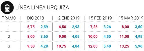截止至目前,这些线路的最低票价均为5.75比索;明天(一月12日)起将涨至6.50比索;二月15日起将涨至7.25比索;最终在三月涨至8比索。
