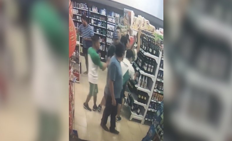 店内的监控录像显示,26日晚上,大约5名球迷闯入了超市内,并径直涌向放酒的货架,抓起酒瓶就往外跑,并没有付钱。整个过程持续了不到10秒钟。