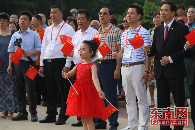东南网6月19日讯(本网记者夏芳 陈倩 实习记者余雪林 文/图)每天清晨,福州市国旗护卫队都会护送国旗到五一广场国旗杆下,迎着第一缕阳光,伴随着国歌,将五星红旗冉冉升起。今日,来自全球5大洲70多个国家的海外侨胞、港澳同胞、归侨侨眷及现场市民近600人参加了这场肃穆庄严的奏国歌、升国旗仪式,并且在五一广场开展了一场别开生面的公益快闪活动。