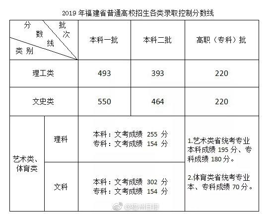 【快讯!2019年福建高考分数线出炉!】 24日上午,福建省高等学校招生委员会召开2019年第二次全体会议,研究确定今年我省高考切线方案,部署高招录取工作。经会议研究决定,2019年福建省普通高校招生各科类各批次录取控制分数线具体如下