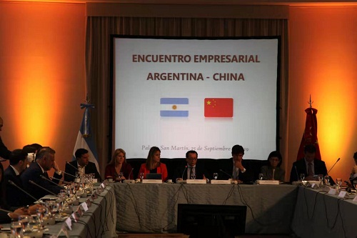 2019年9月25日,中阿企业家研讨会暨中阿企业家圆桌会议机制筹备会在阿根廷外交部圣马丁宫隆重举行,驻阿根廷大使邹肖力、阿根廷生产和劳工部长西卡、驻华大使盖铁戈、国际经济关系国务秘书雷伊塞尔、外贸国务秘书比尔切尔、矿业国务秘书桑切斯,以及中阿两国政府、商协会、企业代表近百人参加会议。