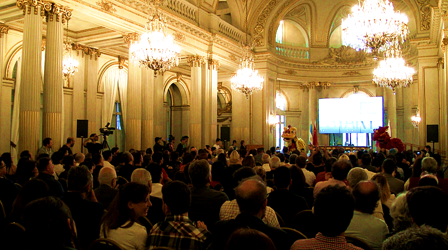 (阿根廷华人网11月30日讯 柳军/文图视频)昨天下午,布宜诺斯艾利斯市议会金色大厅灯火辉煌,由布市议会组织的“文化杰出贡献奖”颁奖活动在这里举行,旅阿华人林文正获此殊荣。作为阿根廷国家电台播音员,他用声音为华人争取权益;他用声音搭建中阿友谊桥梁;他用声音积极宣传阿根廷与中国文化。