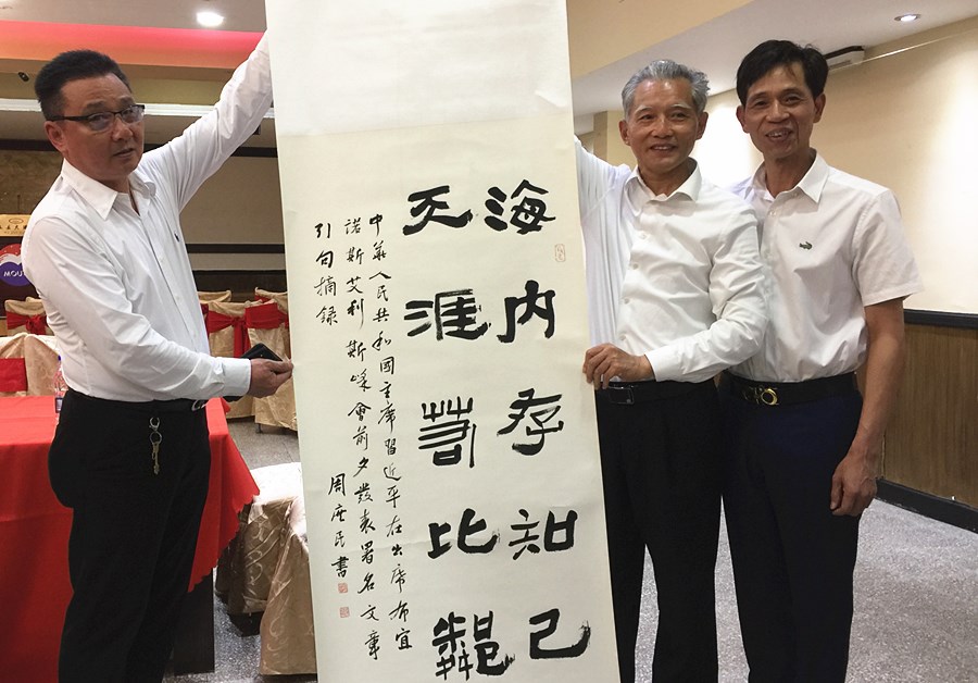重庆市文学艺术家访阿代表团还向中国驻阿使馆,阿根廷福清会馆,阿根廷中华教科文发展基金会赠送了书法、国画和摄影作品。