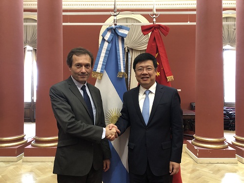 2019年12月20日,驻阿根廷大使邹肖力在阿总统府玫瑰宫会见总统府战略事务国务秘书贝里斯。