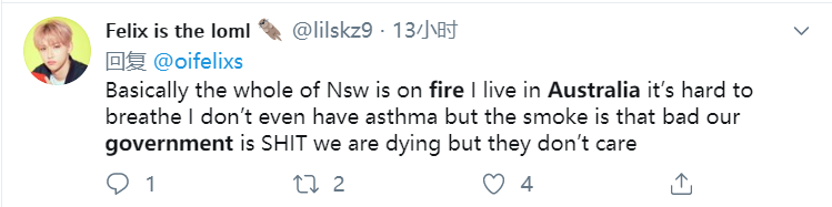 网民:“整个新南威尔士州基本上都着火了,我住在澳大利亚,我没有哮喘,但呼吸都很困难,空气中浓烟滚滚,我们的政府根本不在乎我们的死活。”