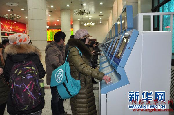 据北京站工作人员介绍,目前有六成旅客是通过互联网购票的,为方便旅客取票,北京站安放了70台自动取票机,通过醒目的揭示,引导旅客在售票厅内取票。
