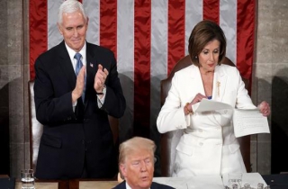 事后,在被问及为什么要把讲稿撕碎时,佩洛西告诉记者,“考虑到其他选项,(我这么做)还是客气的。”美媒也注意到,在演讲开始前,佩洛西曾向特朗普伸出手,但特朗普并没有与她握手。而在特朗普发表国情咨文期间,佩洛西很大程度上似乎都避免注视着面前的美国总统,而是扫视会场或是阅读事先准备好的讲稿。