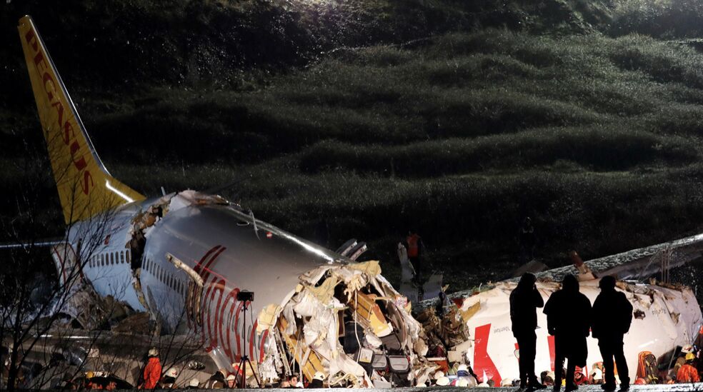 伊斯坦布尔州长阿里·耶里卡亚(Ali Yerlikaya)透露,事故飞机为飞马航空公司的一架波音737-800客机,机上搭乘乘客人数为171名,另有6名机组人员。飞机在着陆时冲出跑道,在撞击中短暂起火但迅速熄灭。机身受损严重,断裂成三部分,驾驶舱完全脱离机身。