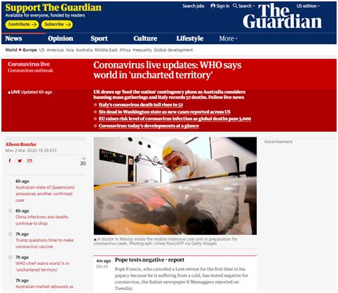 【环球网快讯】英国《卫报》刚刚援引意大利《信使报》(Il Messaggero)3月2日的报道称,因“身体不适”,罗马教皇方济各接受了新型冠状病毒检测,检测结果呈阴性。