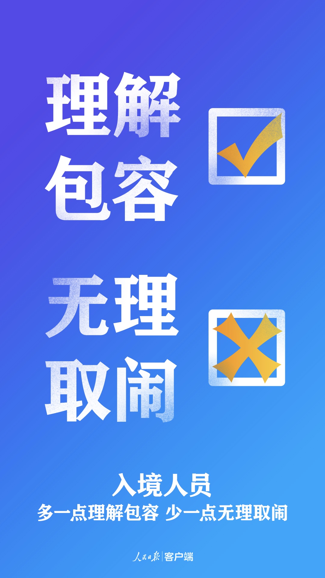 无论防疫工作人员还是入境人员,其实有着共同的目标:降低疫情输入风险。在这个前提下,有什么问题、困难不能在沟通中解决?请入境人员踩准节奏绷紧弦,调整心态尽责任,积极配合疫情防控,毕竟抗击疫情、抵御病毒侵袭,保障大家的健康和安全是我们共同的目标。