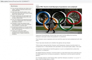 BBC表示,东京奥组委主席森喜朗本月28日表示,如果奥运会不能于2021年如期举行,那么本届2020年东京奥运会将被“取消”。