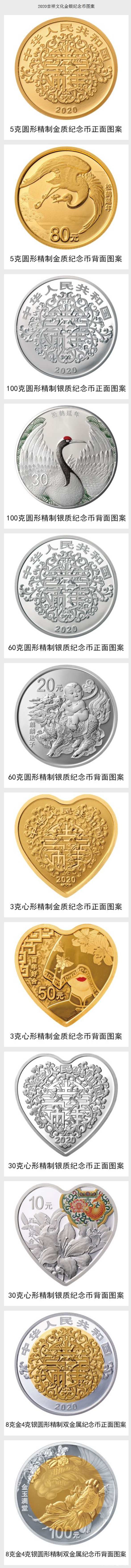中新经纬客户端5月15日电 据央行官网15日消息,中国人民银行定于2020年5月20日发行2020吉祥文化金银纪念币一套。该套纪念币共6枚,其中金质纪念币2枚,银质纪念币3枚,金银双金属纪念币1枚,均为中华人民共和国法定货币。