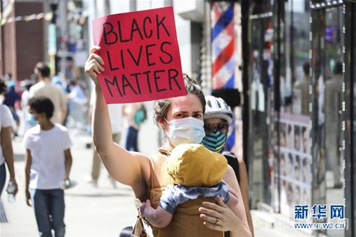 弗洛伊德的凄惨遭遇激起了无数人的愤怒,大批民众举着“我无法呼吸”“黑人的命也是命”“为弗洛伊德讨还公道”“别国不会发生这种事”等标语,走上街头集会抗议。在疫情重灾区纽约市,抗议者布里安娜·彼得里斯科走上街头。“我们的国家病了”她说,“我们必须站出来。”