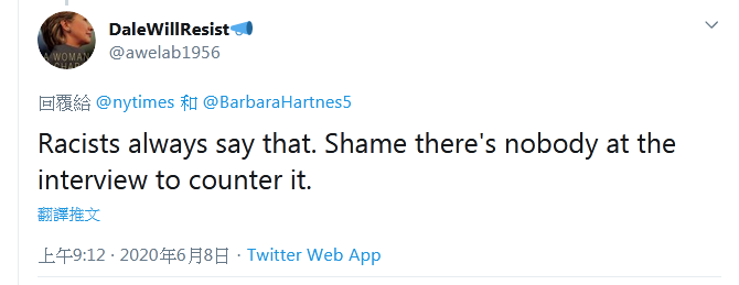 网友DaleWillResist评论说,“种族主义者总是这么说。可耻的是采访期间竟没人去反驳。”↓