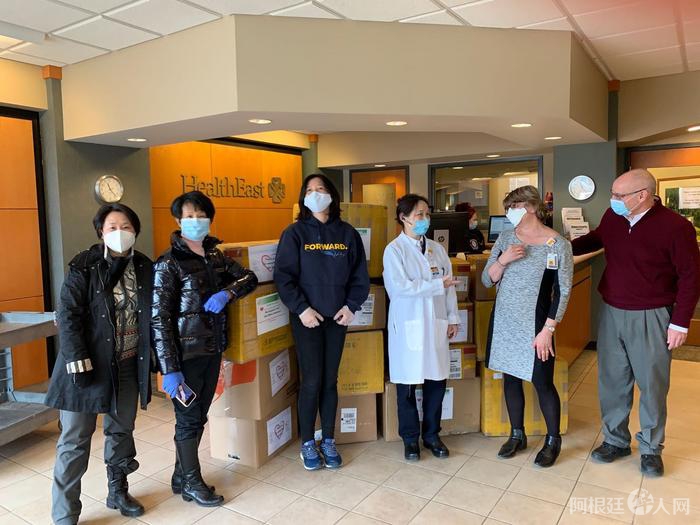募集到捐款后,华人医生们在工作之余从中国寻找供货商、采购物资。李英杰说,截至目前,他们已经收到约10万美元捐款,累计向明州的十余家医院、诊所、疗养院捐赠了超过10万件防护物资。