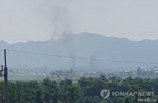 △朝韩非军事区内韩方村庄观测到的开城方向黑烟(图片来源:韩联社)