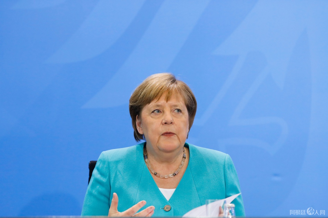 6月17日,德国总理默克尔在首都柏林出席新闻发布会。