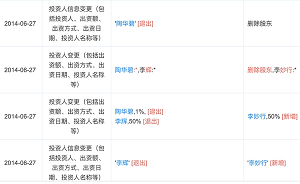 天眼查的数据显示,在2014年陶华碧退出后,“老干妈”品牌背后的贵阳南明老干妈风味食品有限责任公司由大儿子李贵山占股49%,小儿子李妙行占股51%。陶华碧仍任法定代表人和董事长。