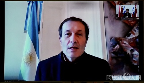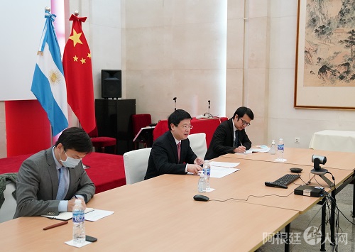 2020年7月14日,驻阿根廷大使邹肖力同阿根廷总统府战略事务国务秘书贝里斯举行视频会议,就中阿关系交换意见。