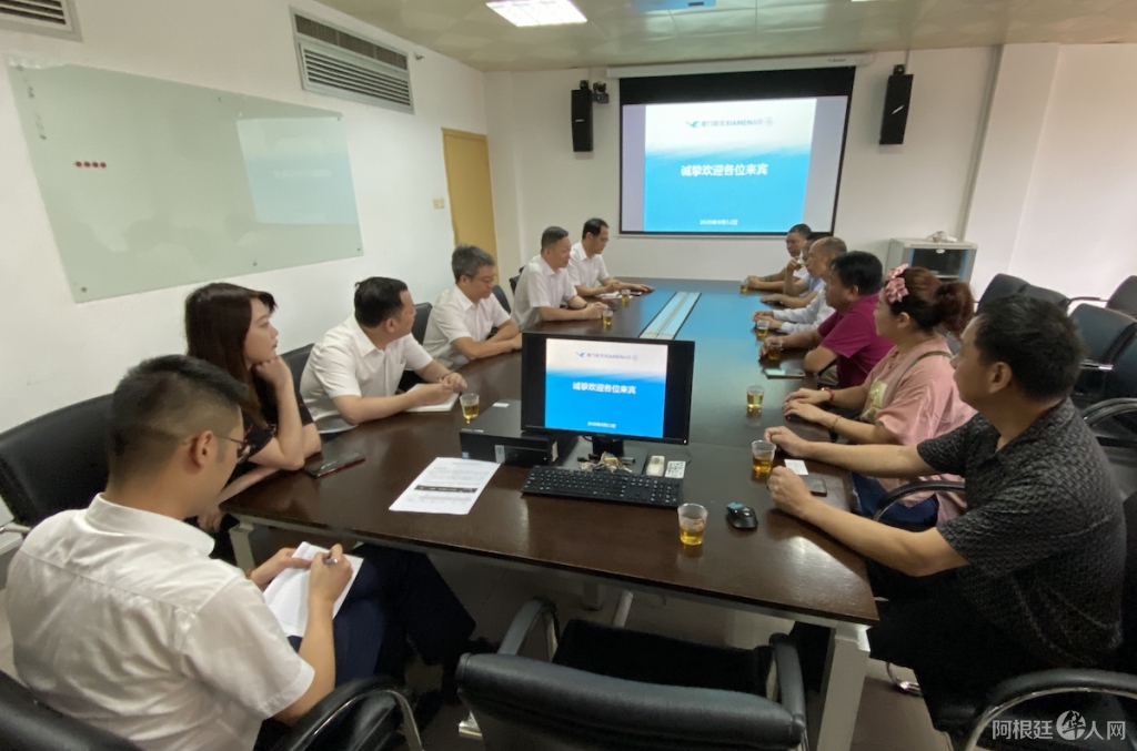 福建福清8月13日电(阿福联) 据阿根廷福清同乡会驻福清联络处消息,福建文化海外驿站阿根廷站负责人、阿根廷福清同乡会会长陈世金,阿根廷福州十邑同乡总会长严盛龙,阿根廷三福企业商会会长吴章耕,阿根廷铂烽一心慈善基金会执行主席陈玉辉,阿根廷华人超市公会秘书长谢瑞仁,阿根廷福清同乡会驻福清联络处代表、福清光大旅行社总经理郑松波等一行12日专程赴福州拜访厦门航空福州分公司,受到庄晓晖副总经理等热情欢迎,双方进行座谈交流。