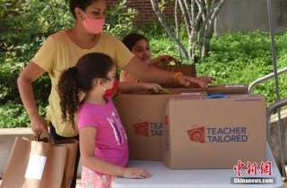 资料图:图为9月2日,美国弗吉尼亚州阿灵顿小学生到校领取新学期教学用品。 中新社记者 陈孟统 摄