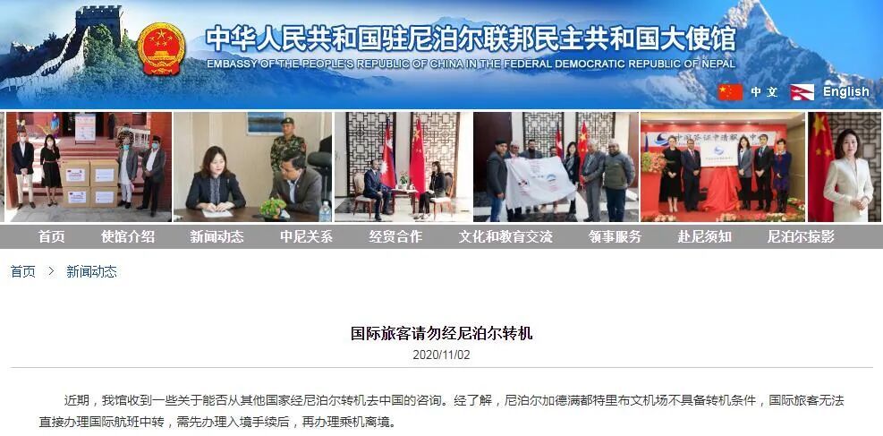 中国驻尼泊尔大使馆网站截图