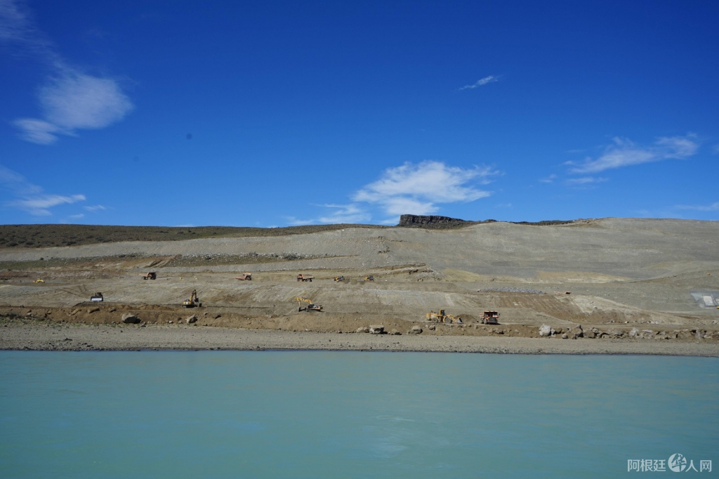 这是11月13日在阿根廷圣克鲁斯省拍摄的拉巴朗科萨水电站大坝的施工现场。