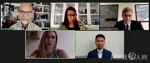 阿根廷外交部国际经济关系国秘办公室主任科尔特莱迪、双多边经济谈判副国秘梦海韵、拉努斯国立大学当代中国研究生专业负责人希拉多等分别发言,高度赞赏中国坚持对外开放、同世界分享发展机遇的立场,一致认为应继续全面推动中阿两国交流与合作,使双边关系发展成果更好惠及两国人民。