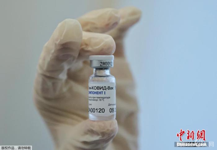 当地时间12月5日,俄罗斯莫斯科,医务人员展示新冠疫苗。