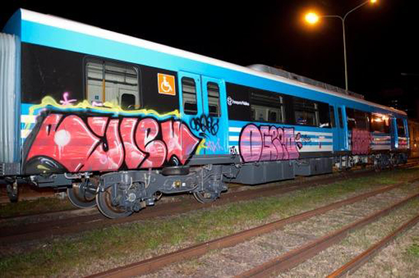 据了解,被涂鸦的列车系阿根廷政府从中国进口的。上周四,阿根廷总统克里斯蒂娜和交通部长弗洛伦西奥·兰达佐共同在布宜诺斯艾利斯市港口出席了 这些列车的交接仪式。这些崭新的列车采用了最新的科技,车厢内安装了冷暖空调和视听音响设备。阿政府计划在未来三个月内,将这些列车投入到首都萨缅托城铁 线的运营。