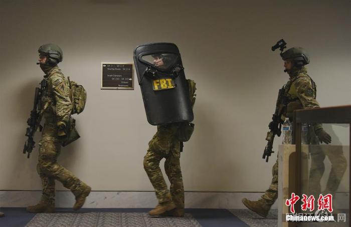 图为1月6日,在哈特参议院办公大楼内的特勤人员。 中新社记者 陈孟统 摄