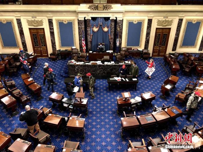 图为1月6日,示威者闯入参议院。 中新社记者 陈孟统 摄