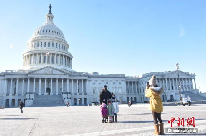 当地时间12月29日,美国首都华盛顿,民众佩戴口罩拍照。
