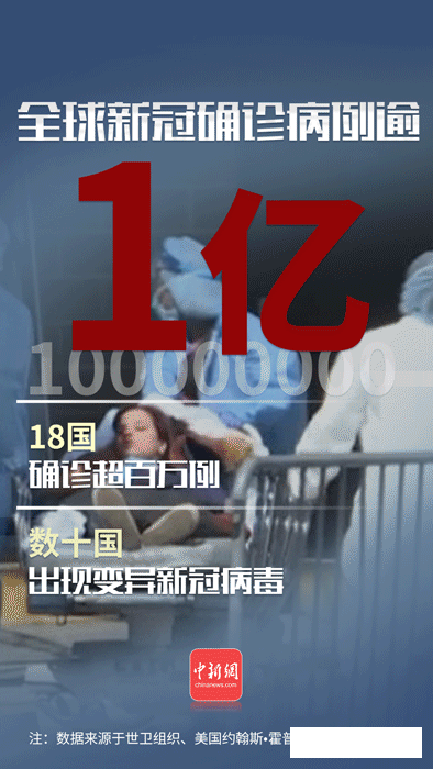 北京时间2021年1月27日,全球感染新冠病毒的人数累计超过1亿。这一天,将以一种特殊的含义,被载入史册。