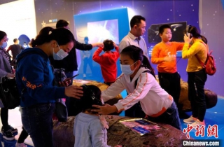 图为游客在“中国天眼”天文科普基地聆听“宇宙”的声音。 田举 摄