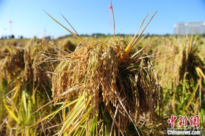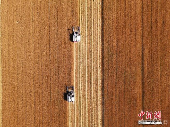 资料图:吉林省镇赉县小冰麦秋收场景。 中新社 潘晟昱 摄