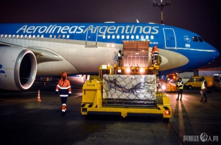 执行本次疫苗运输工作阿根廷航空公司航班于本周二下午13点左右从埃塞萨国际机场起飞,最终于本周四晚间21点20分左右返回。