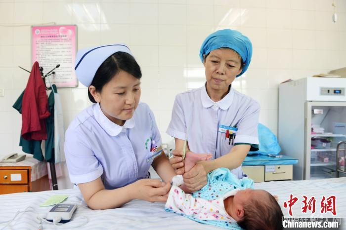 资料图:医护人员照顾婴儿。 孙莹 摄
