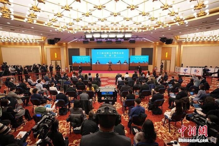 3月7日,十三届全国人大四次会议在北京人民大会堂举行记者会,中国国务委员兼外交部长王毅就“中国外交政策和对外关系”相关问题回答中外记者提问。图为记者在梅地亚中心多功能厅采访。 中新社记者 蒋启明 摄