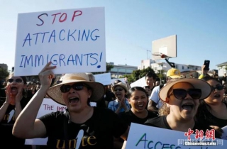 资料图:亚裔移民以及移民权益倡导者在美国加州举行抗议集会