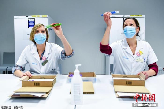 资料图:当地时间2020年12月27日,欧盟多个成员国正式启动新冠疫苗接种工作。图为比利时医护人员正在准备新冠疫苗接种工作。