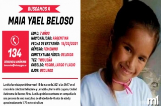 (阿根廷华人网3月18日讯 黄东)本周三下午,上千名阿根廷警方出动警车、直升机及警犬对一名失踪女孩展开大规模搜查。据悉,该名叫玛雅·亚埃尔·贝洛索(Maia Yael Beloso)的7岁女孩日前失踪,最近一次被人看到是于本周一在首都Villa Lugano区,当时被一名男子骑自行车带往大布市西部地区。